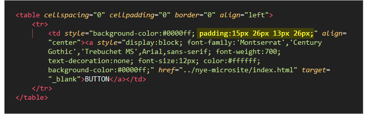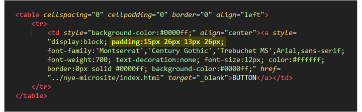 I knew the padding would have to be in the anchor tag to work in a browser, but Outlook didn't like that. So I have to find something Outlook does respect. It's a shot in the dark, but I tried using spacers in lieu of padding. There could be ones on all sides and sub in for padding.