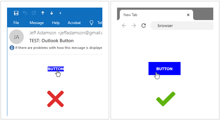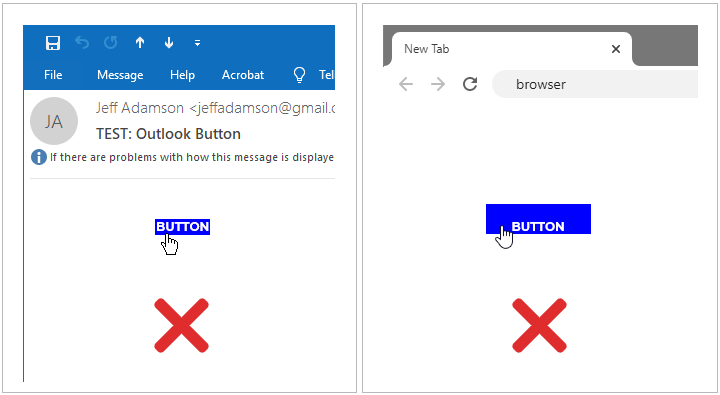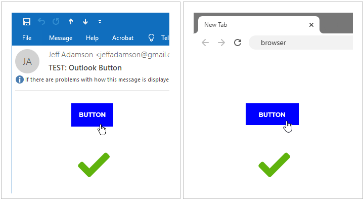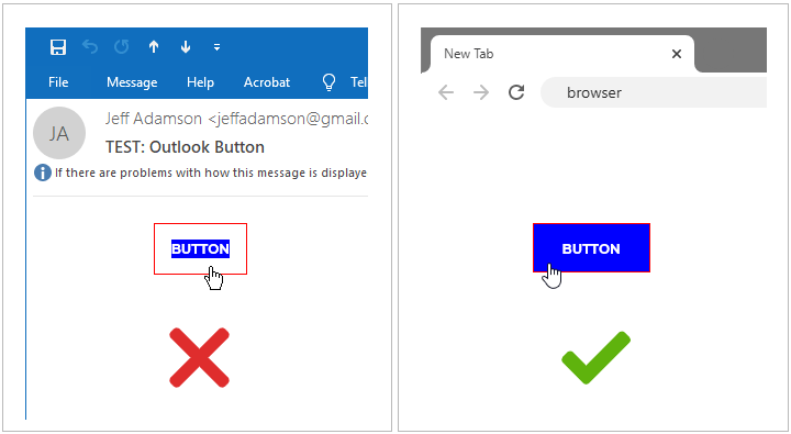 How would a bordered button work in Outlook? I put a 1px red stroke on the button and sent a test email...