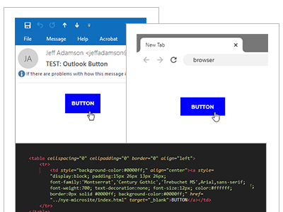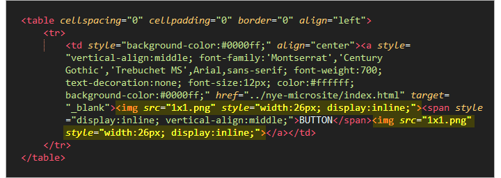 Absolutely not. That didn't work well in any application, but that was ok, there are lots of ways to accomplish things, and one had to pin Outlook down to displaying correctly. I avoided using VML, Vector Markup Language, something Outlook uses, and conditional statements, because I was still dedicated to simplicity. These buttons were used a lot and I wanted them to take up as little space/bandwidth as possible.